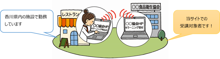 ※香川県以外の食品関連施設に勤務している方は当協会eラーニング方式講習会を受講できませんのでご注意ください。
