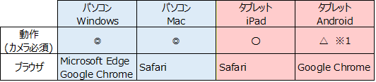 ※1 Android は機種が非常に多いため完全な動作保証はしていません。動作に不具合が発見された場合は調査し、対応可能な範囲で対応いたしますが、解決に至らなかった場合は、別の端末でご受講をお願いすることがございますのでご了承ください。