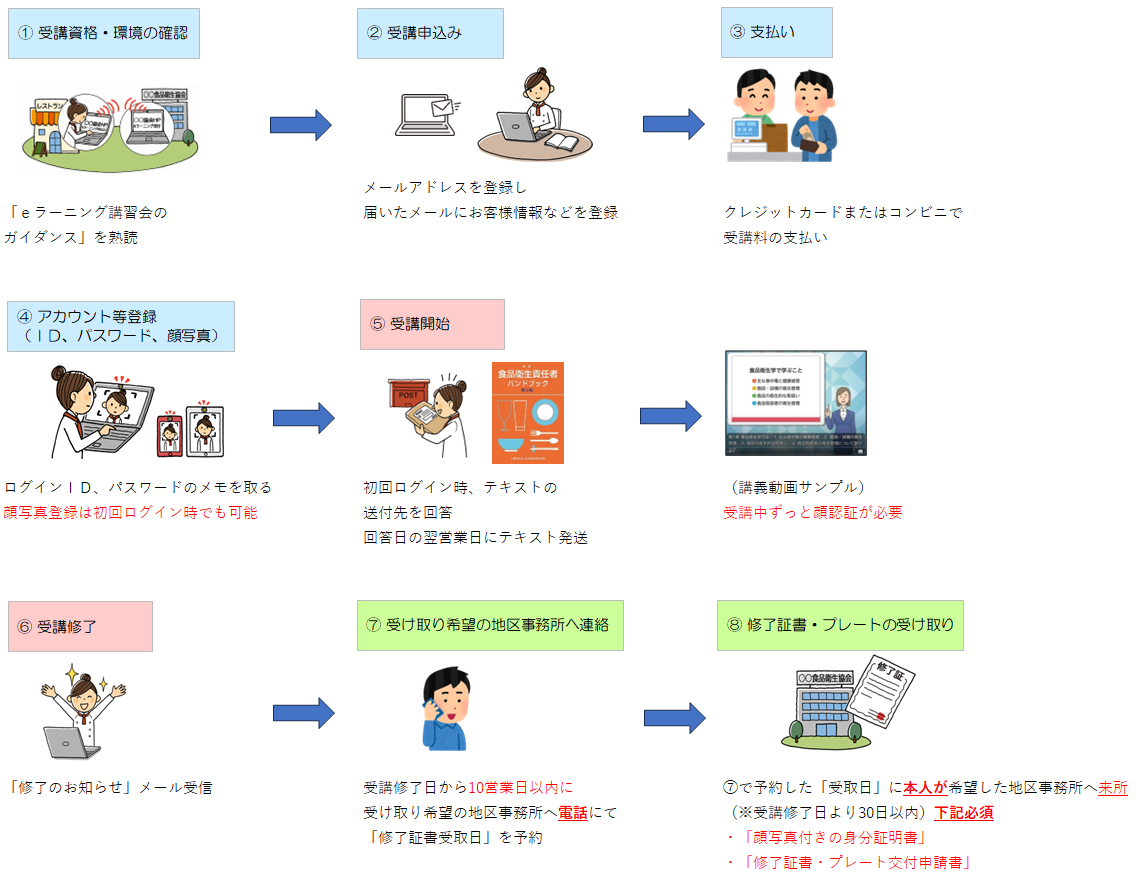 ※食品衛生責任者制度の2に記載してある資格をお持ちの方々と同等となることから、遅刻・途中退場は認められません。