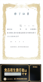 ・講習会終了後、修了証書と食品衛生責任者プレートをお渡しします。